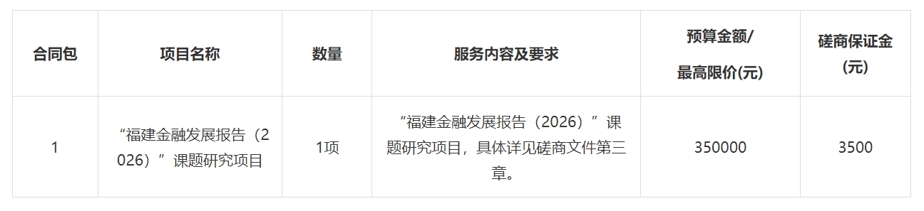 项目名称:“福建金融发展报告(2026)”课题研究项目