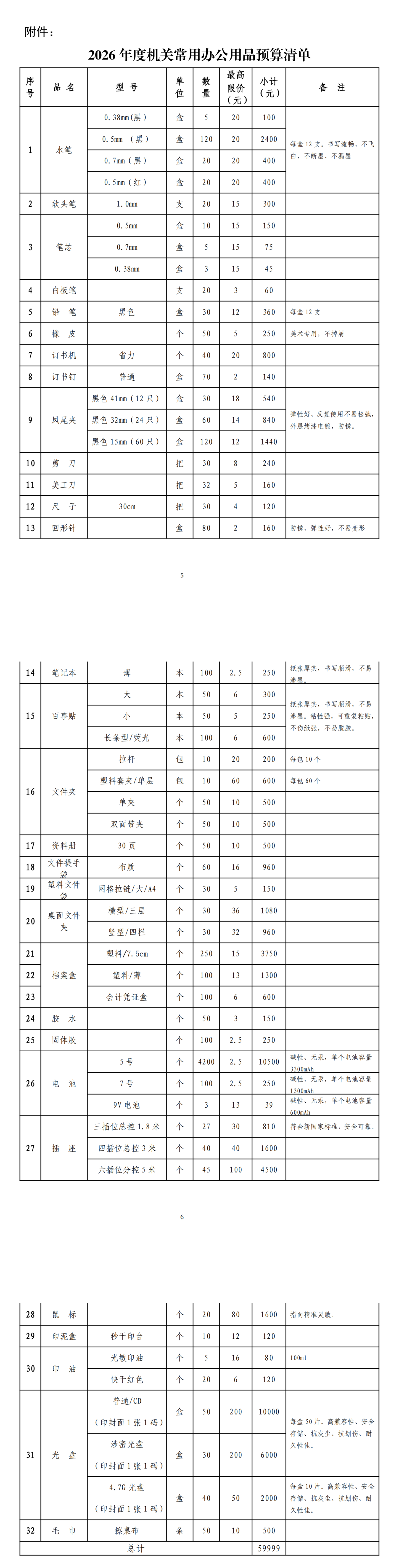 附件:2026年度机关办公用品预算清单