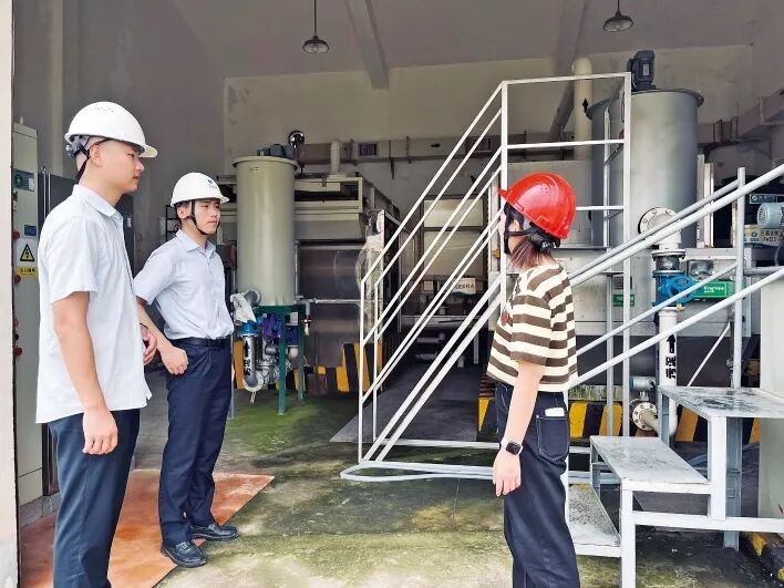 图为邮储银行泉州市分行工作人员(左一、左二)走访环保节能企业,了解金融需求。机构/供图