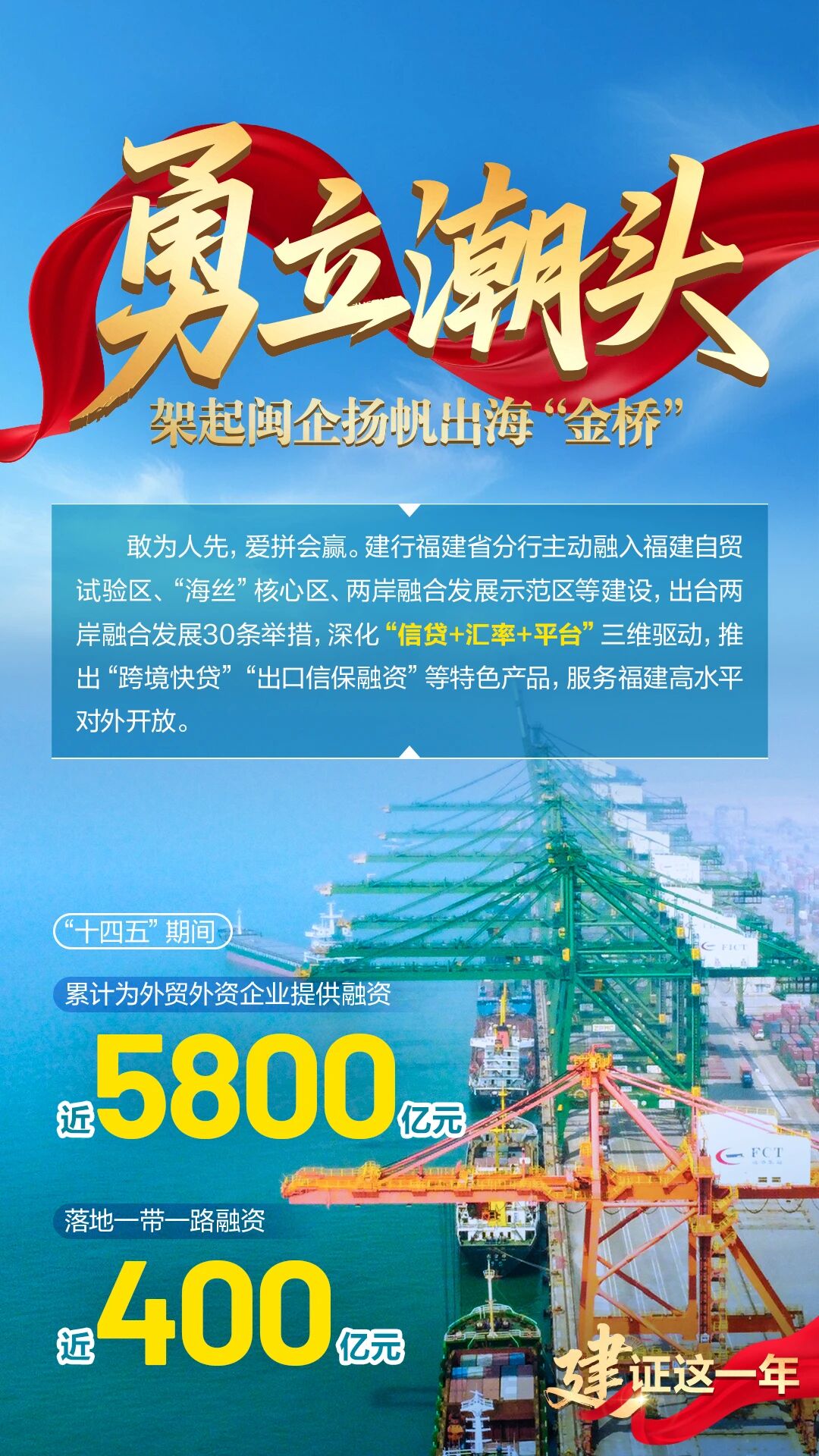 “十四五”期间,建行福建省分行深化落实建总行与省政府的战略合作协议,累计提供综合融资超4万亿元,为各类市场主体减费让利超330亿元;其中,去年10月以来累计提供投融资超9000亿元,对接省重点项目1461个,持续为新福建建设赋能增劲。