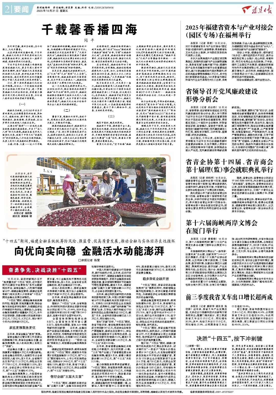 “十四五”期间,福建抓实做好金融“五篇大文章”,金融与实体经济良性循环持续巩固深化。