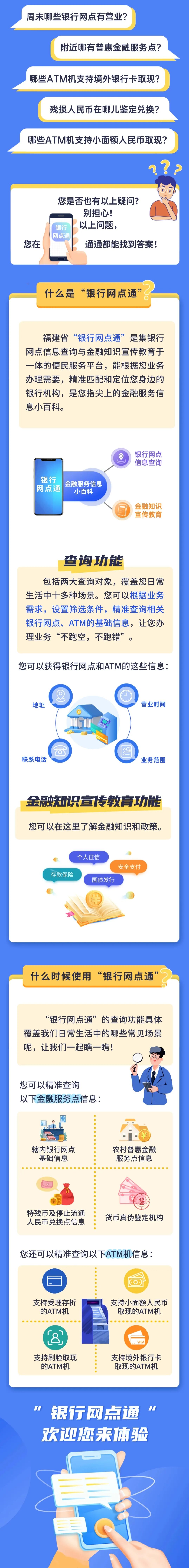 目前,该平台查询范围覆盖了福建全省6473个银行网点、6985个自助银行点和11168个农村普惠金融服务点。同时,该平台具备金融知识普及宣传功能,便利社会公众轻松获取金融知识,让金融服务更加精准、高效地触达社会公众。