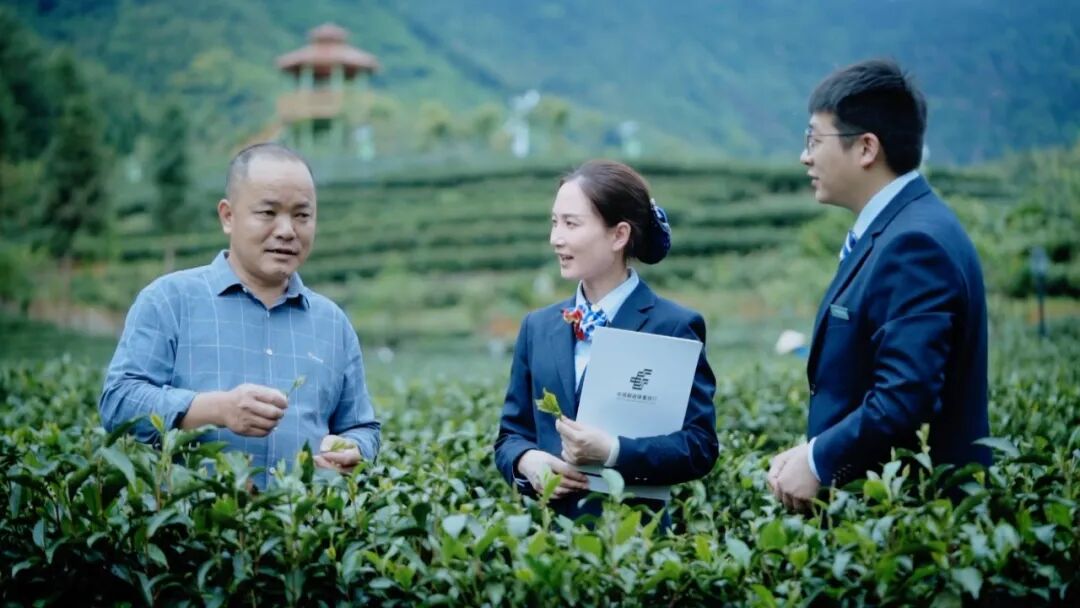 茶业是南平市的优势生态产业。邮储银行南平市分行客户经理在当地绿色生态茶园向茶农了解资金使用需求。图源:邮储银行福建省分行