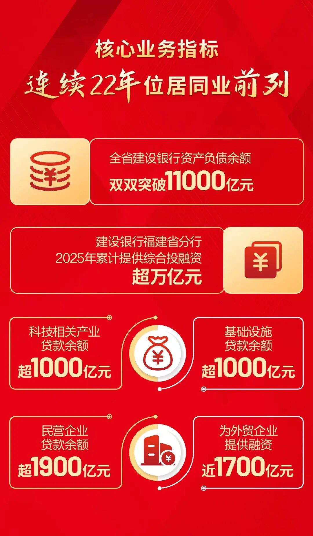 从支撑一座大桥的贯通,到服务全省发展的脉搏;从浇筑重大项目的钢筋铁骨,到润泽民生日常的细水微光,福建建行始终与时代同频、与福建共振。