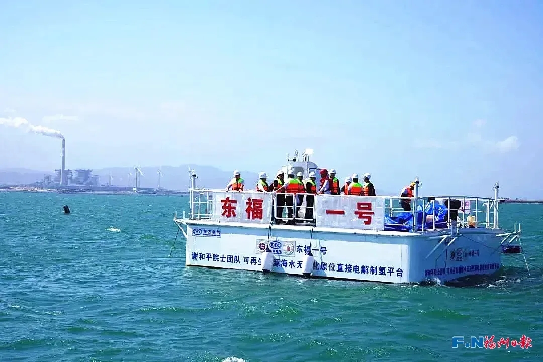 解题之策,在探索中愈发清晰。在福清兴化湾,两套“大国重器”遥相呼应。来自国内首台10兆瓦海上风电机组的绿电,通过海上电缆输送至“东福一号”——全球首套与可再生能源相结合的漂浮式海上无淡化直接制氢平台,源源不断地从海水中电解出氢气。这一几代人共同追逐的蓝色梦想,正在福建照进现实。