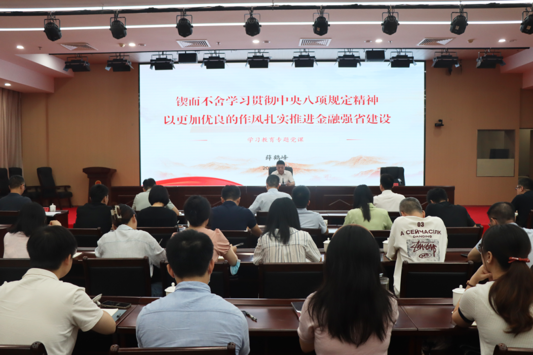 为深入学习贯彻习近平总书记关于加强党的作风建设的重要论述,扎实开展深入贯彻中央八项规定精神学习教育。7月4日,省委金融办室务会议召集人薛鹤峰为全办党员干部讲授专题党课。
