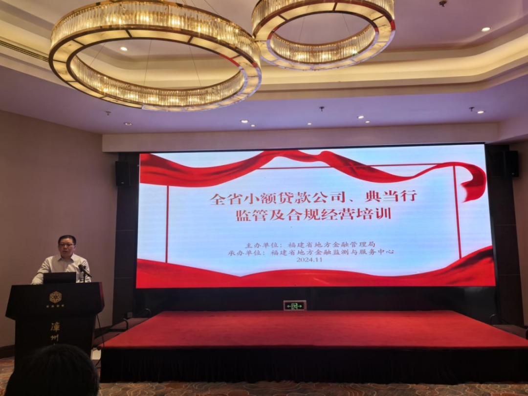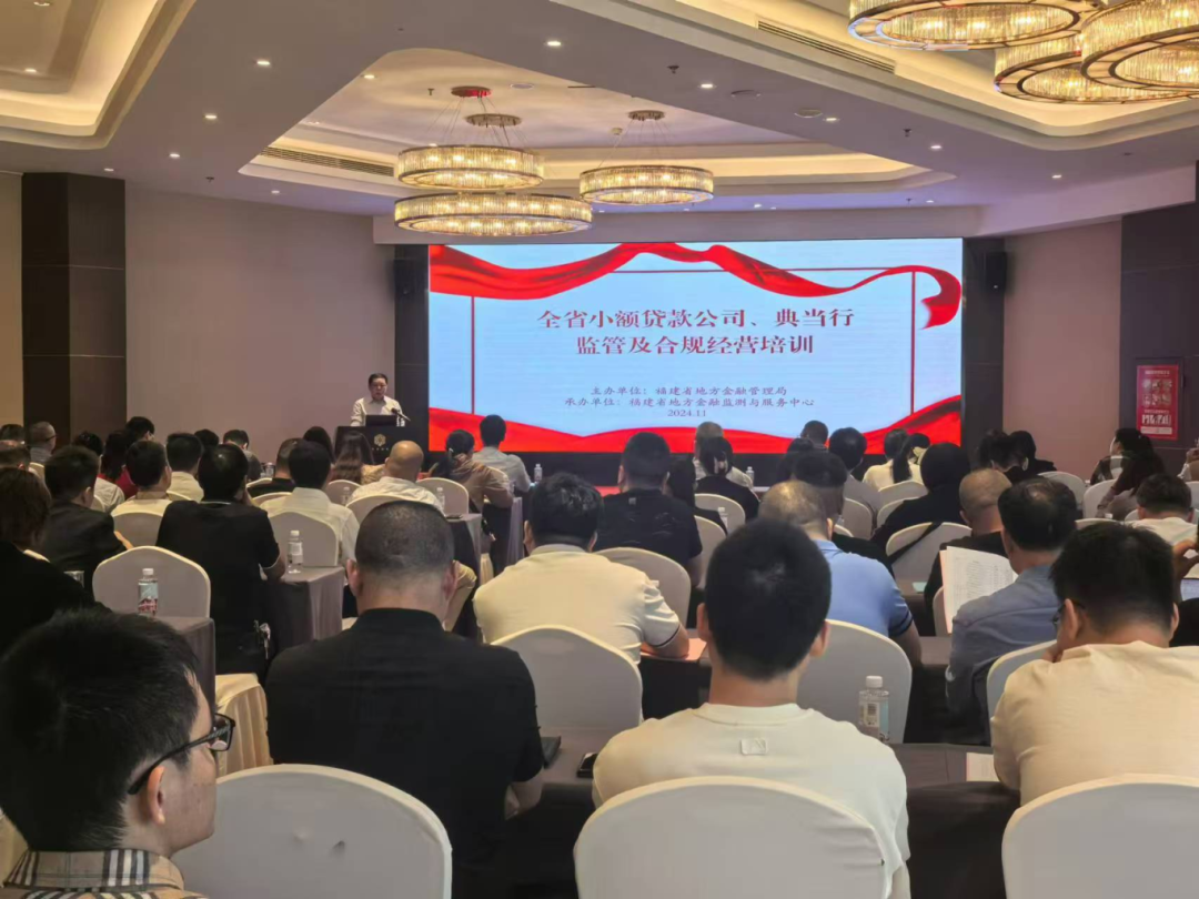 为深入贯彻落实习近平总书记来闽考察时的重要讲话精神和党的二十届三中全会、中央金融工作会议精神,强化我省小额贷款公司与典当行业的合规运营与风险防范意识,11月13日至15日,福建省地方金融管理局在漳州市举办了2024年度全省小额贷款公司、典当行监管及合规经营培训活动。省地方金融监测与服务中心有关同志、各设区市地方金融主管部门业务负责人、部分小额贷款公司、典当行高管人员及省地方金融组织协会负责人共计80余名学员参加了培训。