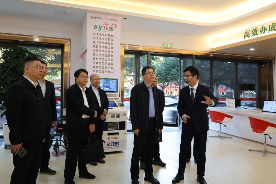 调研组一行走访武平县林权服务中心,实地查看林业金融区块链和“e林通”平台建设、管理情况,详细了解林权确权、抵押、交易、融资等运作模式,鼓励形成更多可复制可推广的“武平经验”;在新罗区实地察看了养老金融综合服务示范点,调研适老“硬设施”布设和知识宣讲“软文化”活动开展情况,建议龙岩市积极创新拓展养老金融产品和服务,做好做实养老金融大文章。