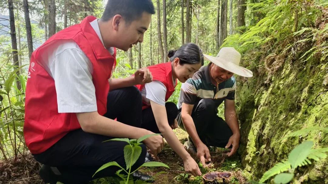 农信金融助理在黄振芳家庭林场调研林下经济发展情况