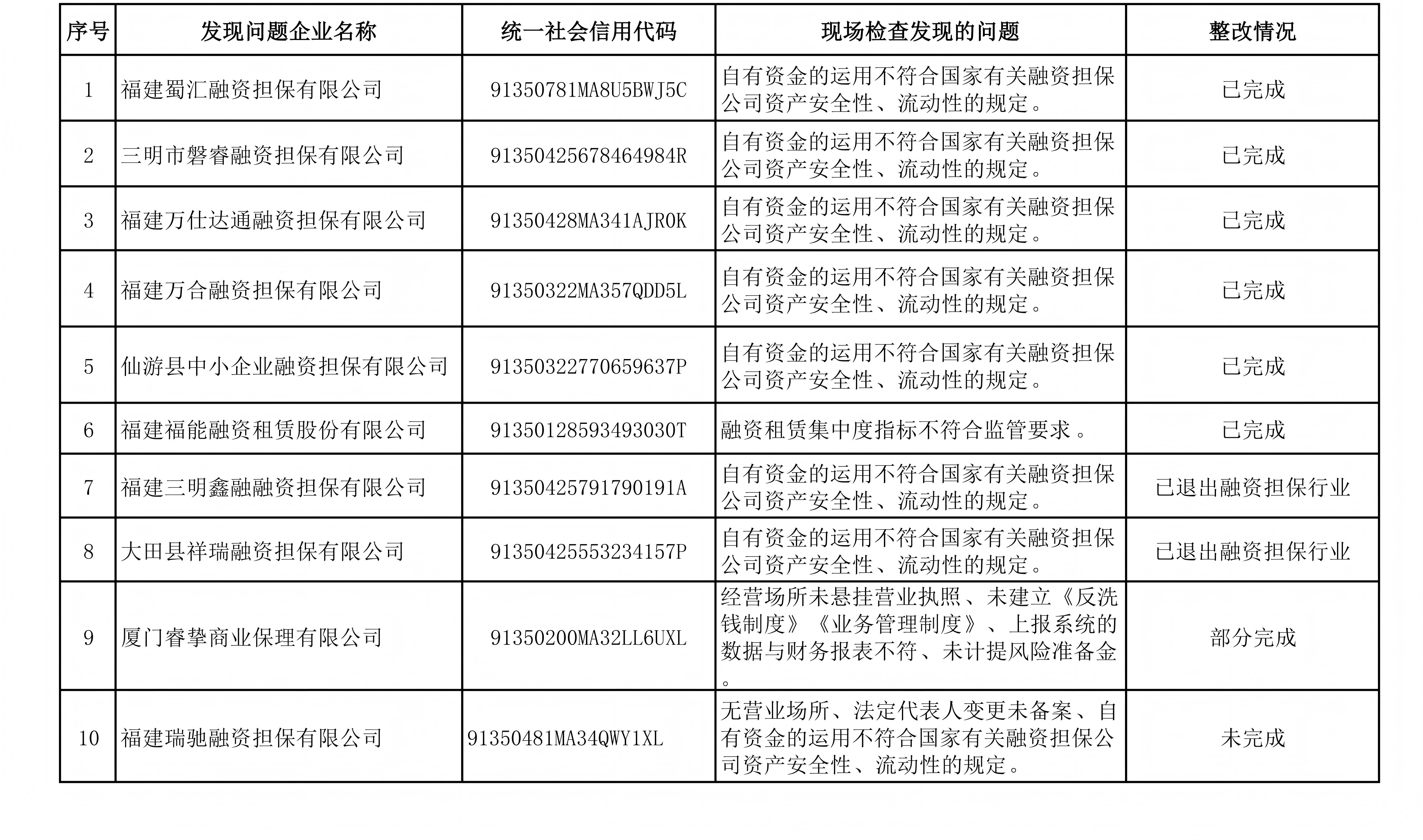 2025年地方金融组织监督管理“双随机”抽查发现问题企业整改情况公示